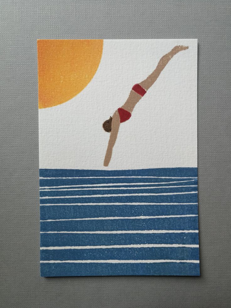 Our challenge this week at Just Us Girls #698 is CAS with Sports as the theme. I have lots of soccer stamps but no reason anymore to make a soccer card other than this challenge. I looked around the internet and found a piece of graphic art that I liked, then searched for a sport to go with it. I chose Cliff Diving! I know that is a little out there but here is a snippet of information about this actual competition.